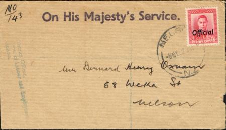 | KGVI Official 6d small OHMS registered 1952 cover. 2d postage, 4d registration.