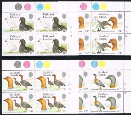 | Falkland Islands. 1988 Geese. Set in UHM plate blocks of four. SG 559/562. |