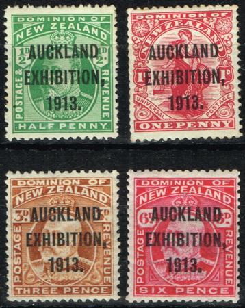 | 1913 Auckland Exhibition. Mint of four. ½d and 1d with minor fault. CP S5a/8a, SG 412/415.