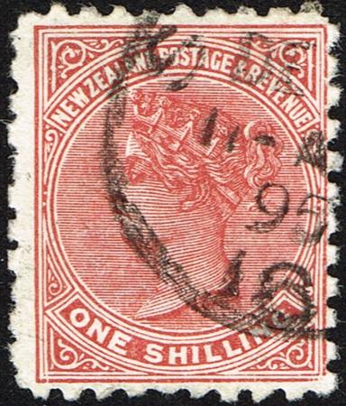 | 1/- red-brown, perf 10. Used (1895). Centred slightly to the right. CP D10e. SG 226. |