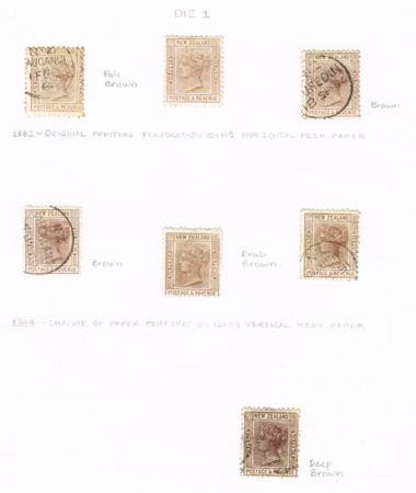 | 2nd Side Face. 6d Three page collection. 15 singles. Die 1: six perf 12 x 11½ (VM and HM) plus block of six and one on Life Ins paper. Die 2: three perf 10; two perf 10 x 11 and three perf 11 plus block of four. Fully described (dies, perfs shades etc)..