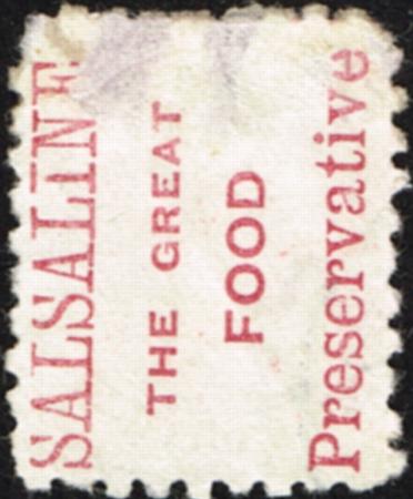 | 1/- perf 10. Fine used with Salsaline advert in red. Position 183. CP DA10e, SG 226e.