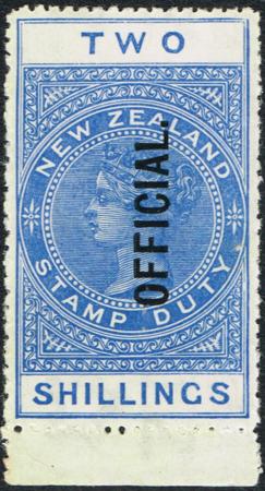 | 1882 2/- Long Queen Official, perf 14. UHM. Well centred. Very small tone on gum. HInged on selvedge. CP ZO2g, SG O82.