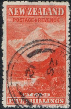 | 1898 Pictorials. 5/-. Perf 14 (sideways watermark.). Fine used (1912). Well centred. CP E21e, SG 329.