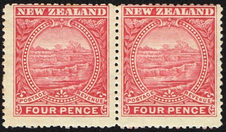| 1898 Pictorials. 4d London print. UHM/LHM pair. Centred to the top. CP E11a, SG 252. |