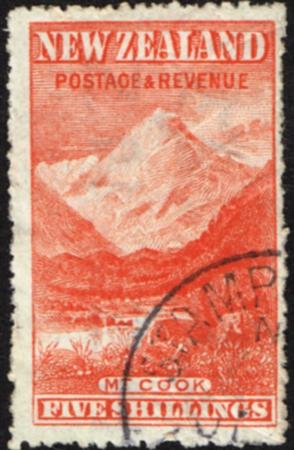 | 1898 Pictorials. 5/-. Perf 14 (sideways wmk.). Fiscally used. Right centred. CP E21e, SG 329. |