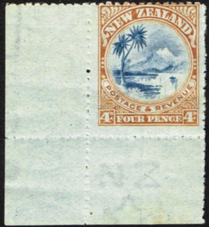 | 1900 Pictorials. 4d. Perf 14 x 12¾-13¼. UHM single. Top centred. From lower right sheet corner. CP E12f, SG 379. Catalogue value $200.