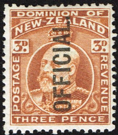 | KEVII 3d Official (chestnut). Perf 14 x 14½. UHM. Slightly top right centred. CP HO3a, SG O74. Catalogue value $160.