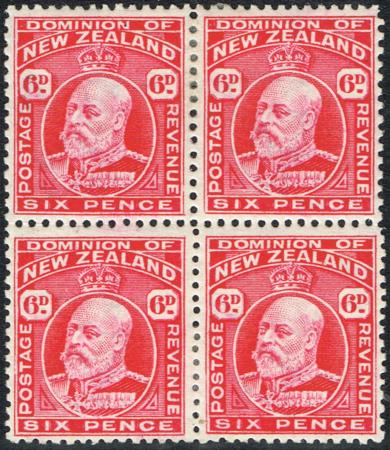 | KEVII. 6d two-perf pair. LHM block of four. Well centred. CP H6e, SG 403a. Catalogue value $1,600.