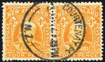 | KEVII. 4d bright yellow, perf 14 x 14½. Fine used pair (3 April 1914). CP H4d(1), SG 390a. |
