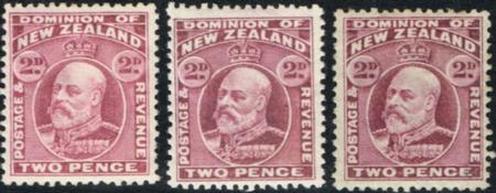 | KEVII. 2d. Three LHM singles in Three different shades. CP H2a. SG 388. |