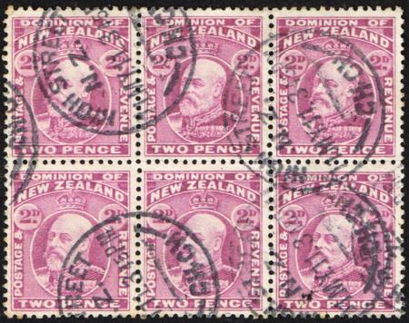 | KEVII. 2d mauve. Used block of six (11 May 1911). CP H2a, SG 388. |