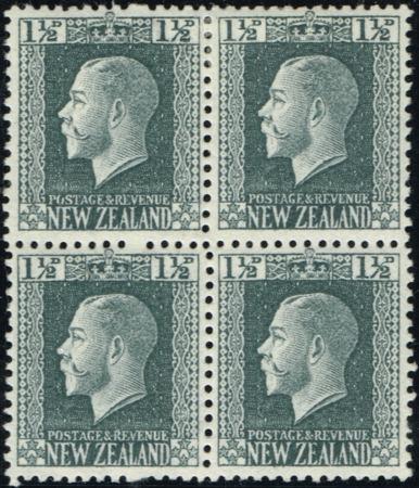 | KGV Recess. 1½d on provisional paper. Perf 14 x 13¼. UHM/Mint block of four, two with no wmks. CP K1d(Z), SG 431a. |