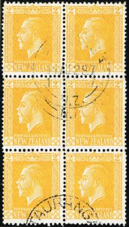 | KGV. 2d Wiggins Teape (perf 14 x 15). Very fine used (1928) block of six in a lemon-yellow shade. A couple of light tone spots. CP K18g(2), SG 451. Catalogue value $300 +GST.