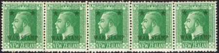 | 1915 ½d War Tax vending machine strip of six. UHM. Ragged perfs result from ben pulled through machine slot. Scarce. CP K14a(X). Catalogue value $1,875.