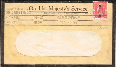 | 1d Field Marshall (perf 14 x 15) on OHMS mourning cover (1936).
