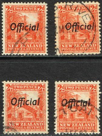 | 1935 2d Official. Used copies of the four perf/paper variations. CP LO4b - LO4f. Catalogue value $130.