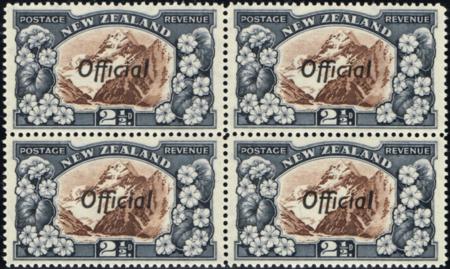 | 1935 2½d Official (line perf 14). UHM block of four. Well centred. CP LO5d, SG O124a. |