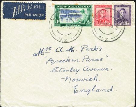 | KGVI 8d plus 6d plus 1d 1948 Health on correct 1/3d rate airmail cover to UK (17 Nov 1948). |