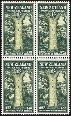 | 1940 Centennial. 1/- UHM block of four. Well centred. A couple of faint perf tones. CP S38a, SG 625. Catalogue value $300.