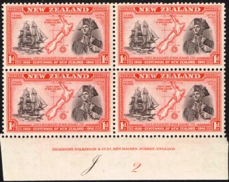 | 1940 Centennial. 1d LHM plate block of four (plate I2). Centred towards the top. CP S27a, SG 614. |