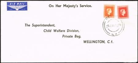 | QEII 1d plus 3d Officials (4d airmail rate) on OHMS airmail cover (1956).