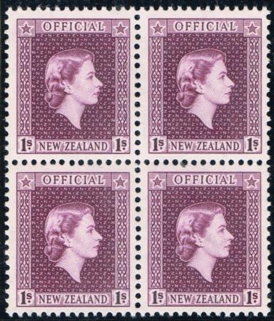 | QEII 1/- Official. UHM block of four on white paper. CP NO27b, SG O166b.