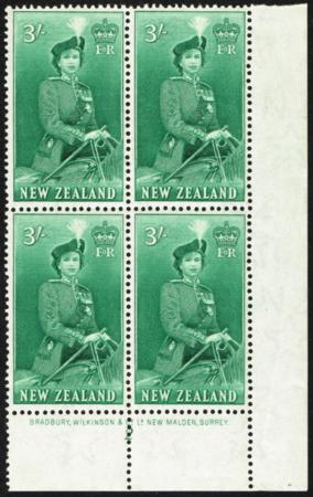 | QEII. 3/- UHM plate block of four. Right centred. SG 734. Catalogue value $225.
