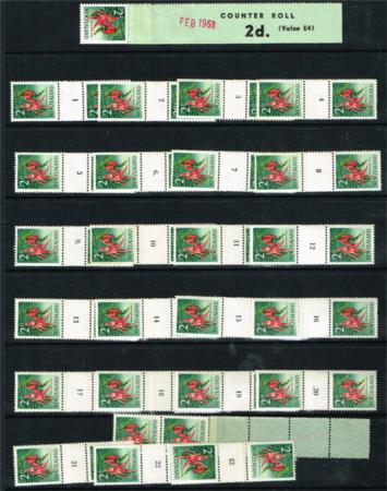 | 1960 Definitives. 2d. Full set of 23 coil pairs with black numbers. LHM. With start and end papers. CP OC3a. Catalogue value $250+.
