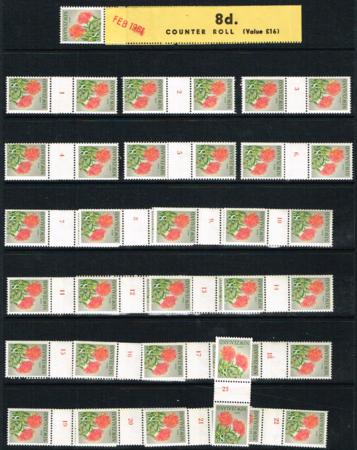 | 1960 Definitives. 8d. Full set of 23 with red coil numbers. With start paper (rolling date FEB 1961). Mint. Chatter print on Nš 23. CP OC10a.