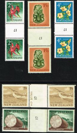 | 1960 Definitives. LHM set of the five original coil pairs with inverted or upwards numbers. All with number 17. CP O3a/15a. |