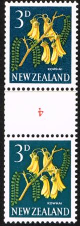 | 1960 Definitives. 3d coil pair. Red coil number 4, one stamp original paper and one stamp chalky paper. UHM. CP OC5a(Y). Catalogue value $175.