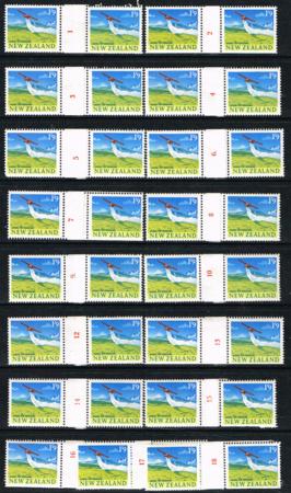 | 1960 definitives. 1/9d multicolour. Part UHM set of 17 (missing numbers 11 and 19) coil pairs. CP OC15c. |