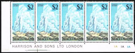 | 1968 $2 multicolour in UHM/LHM plate number strip of five.