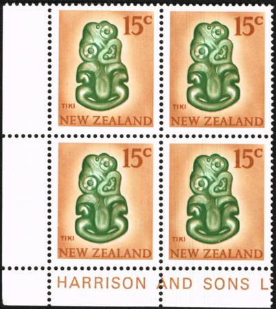 | 1967 Definitives. 15¢. Mint block of four with a series of vertical green doctor blade lines. |