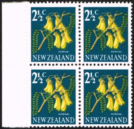 | 1967 Definitives. 2½¢. LHM block of four with blind perfs at left (not punched through). CP OD4a, SG 848. |