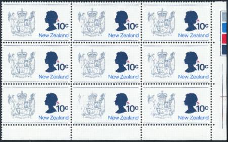 | 1970 10¢. No watermark. UHM block of nine with silver part omitted (especially centre bottom stamp).