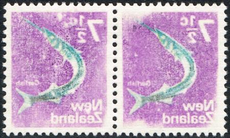 | 1970 7½¢ wmk. UHM pair with full offset of all colours. Cat $1,200. CP P10a(Z), SG 923.