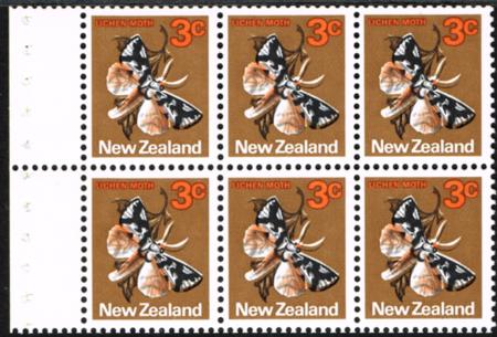 | 1970 Definitives. 3¢ (unwatermarked) booklet pane. UHM with downward black colour shift. P5b. |