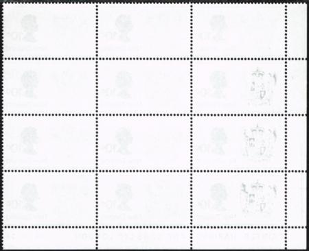 | 1970 Definitives. 10¢ no wmk. (white gum). UHM plate block (2A2A2A5A) of 12 with part silver offset on three stamps. CP P12b(U), SG 1017. |