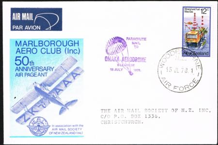 | 1978 (15 July). Parachute Mail to Omaka Aerodrome. Stapleton #696.