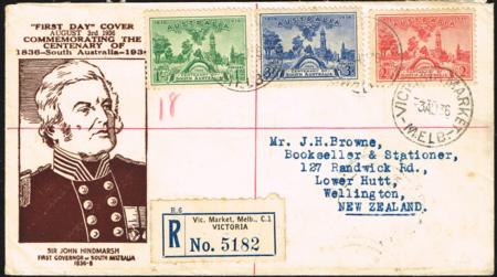 | Australia. 1937 South Australia set on registered illustrated FDC to New Zealand. A few tones.