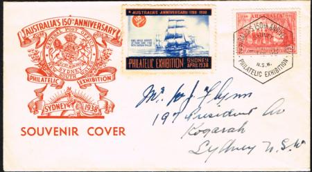 | Australia. 1938 150th Anniversary Stamp Exhibition cover with cinderella.