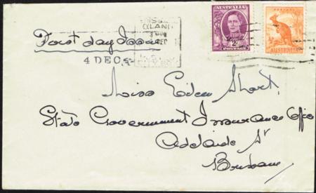 | Australia. 1944 2d KGVI (plus ½d Roo) on plain FDC (4 Dec 1944 - year not so clear). |