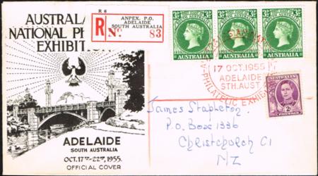 | Australia. Illustrated 'Australasian National Philatelic Exhibition' registered cover to N.Z.