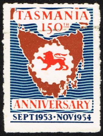 | Australia cinderella label. Tasmania 150th Anniversary (1953/54). Used. |