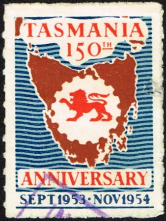 | Australia cinderella label. Tasmania 150th Anniversary (1953/54). Used. |