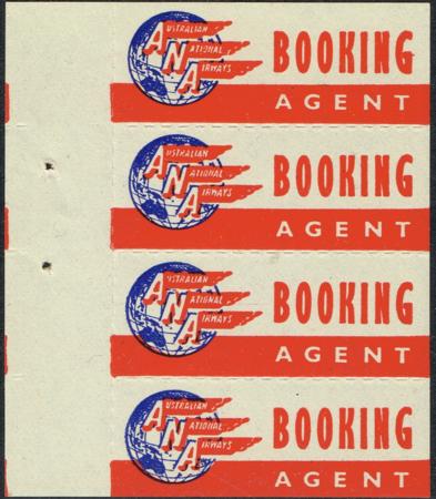 | Australia Airmail Cinderella. 1940s ANA Booking Agent label. Scarce UHM booklet pane of four. Unlisted in Frommer. |