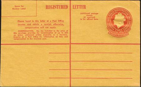 | Australia Postal Stationery. 2/5d QEII registered cover (with ordinary ink). Unused. ACSC RE43.