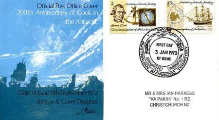 | Australian Antarctic AAT. 1973 FDC to NZ cancelled Davis AAT First Day of Issue 3 Jan 73.